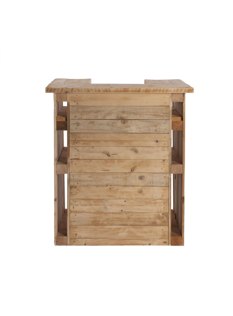Comptoir PALETTE, son aspect brut et son bois de palette en font l’élément indispensable pour créer un stand original.
