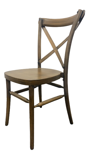 Elle est composée de pieds évasés sur lesquels repose une assise aux bords arrondis. Des barreaux de renforts viennent rajouter une touche d’élégance supplémentaire. Le dossier possède deux lattes qui s’entrecroisent pour accueillir confortablement son hôte.