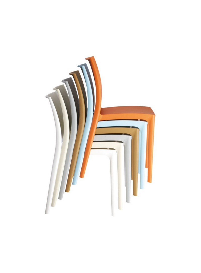 Chaise plastique bistrot, bar, restaurant empilable. Un design sans complexe pour offrir une chaise légère comme l’été. Fabriquée en polypropylène injecté avec traitement anti-UV, elle est utilisable en intérieur comme en extérieur.