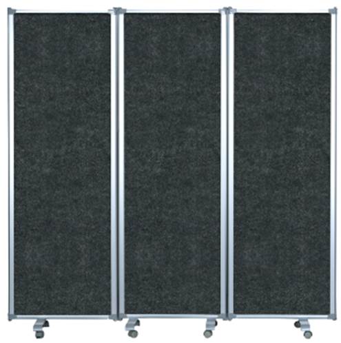 Cloison mobile sur roulettes, coton acoustique noir, trois panneaux, 180 x 180 cm