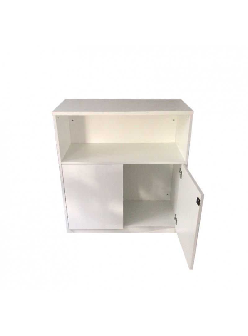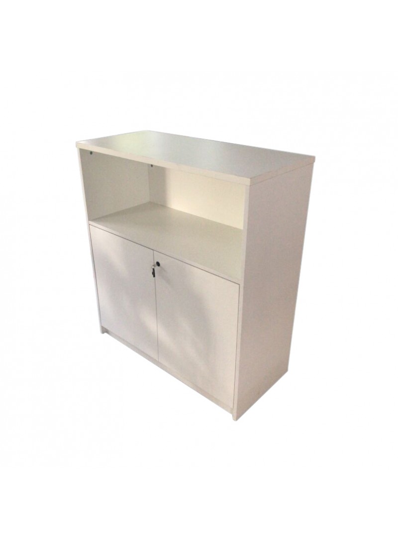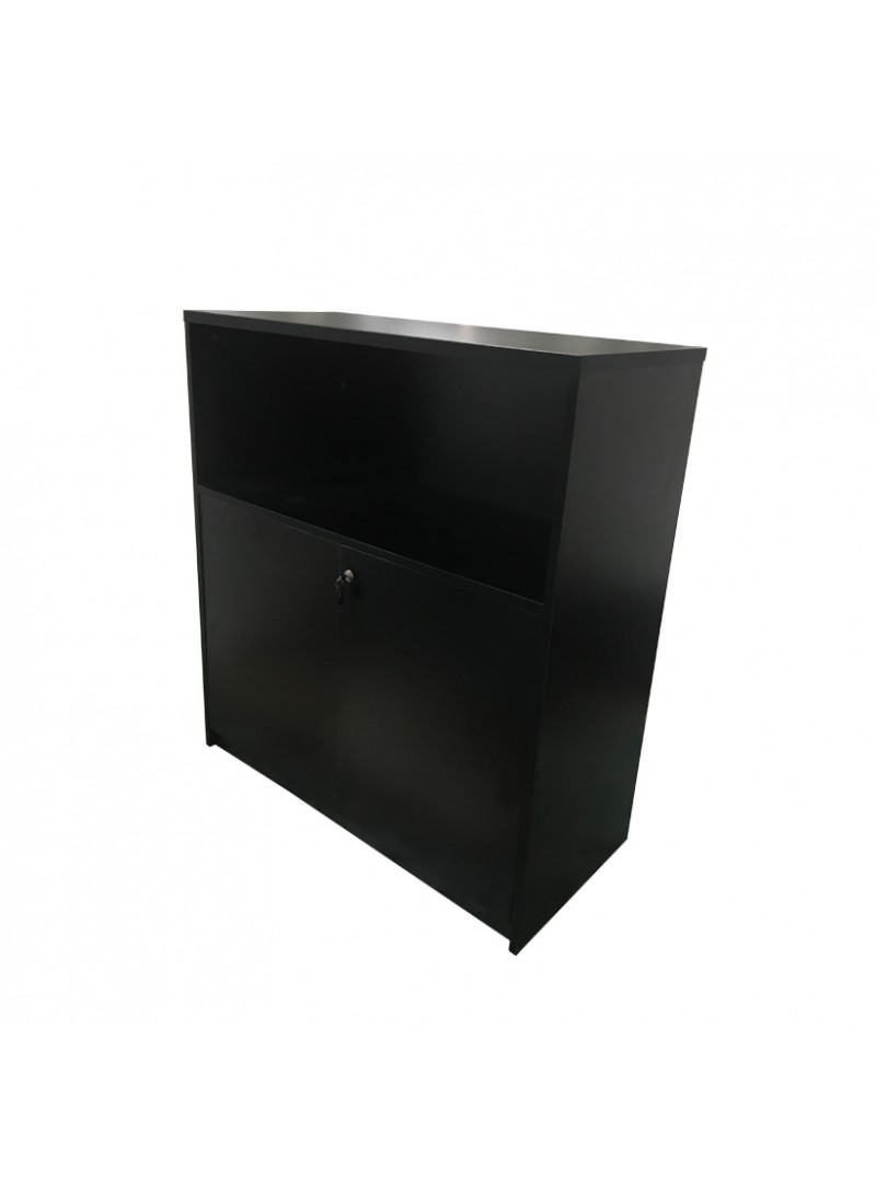 Comptoir d’accueil avec 3 niveaux de rangements. Deux sont sécurisés par des portes équipées d’une serrure à clé.