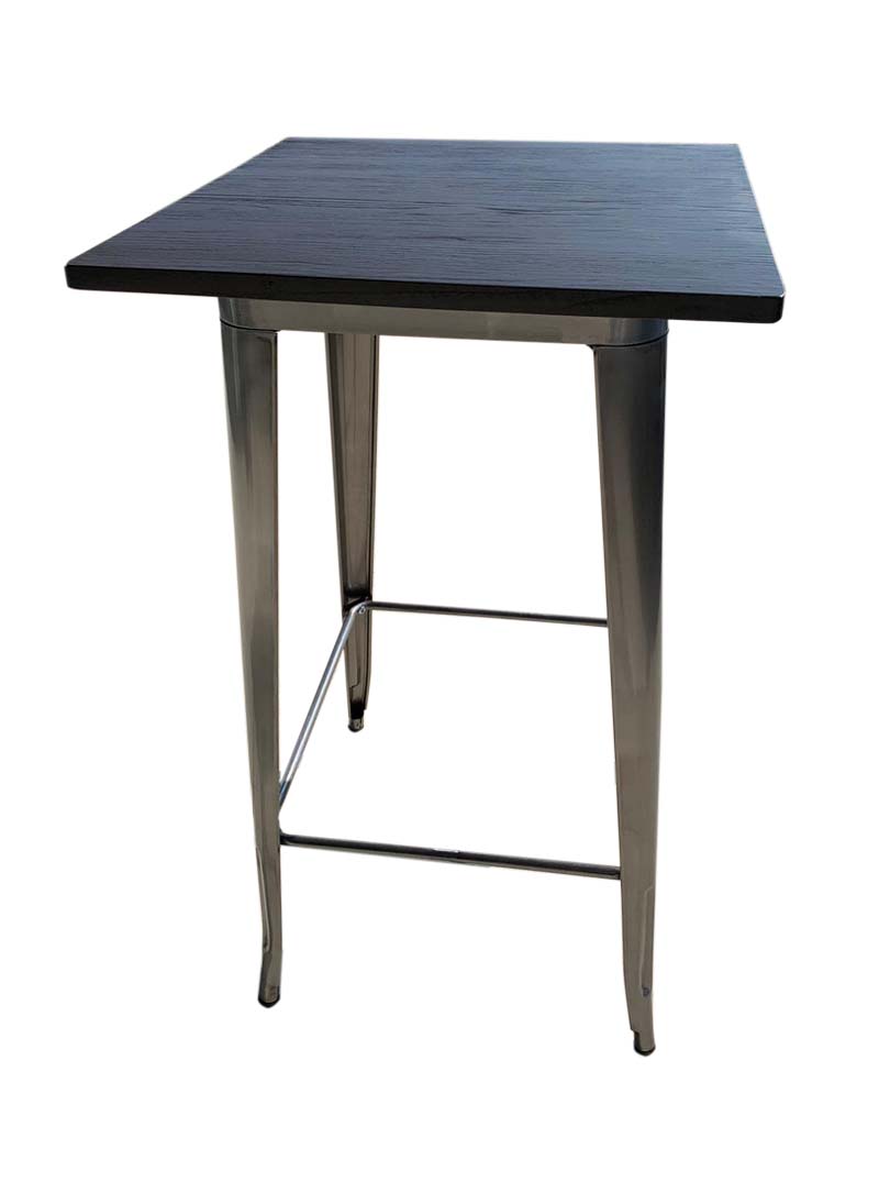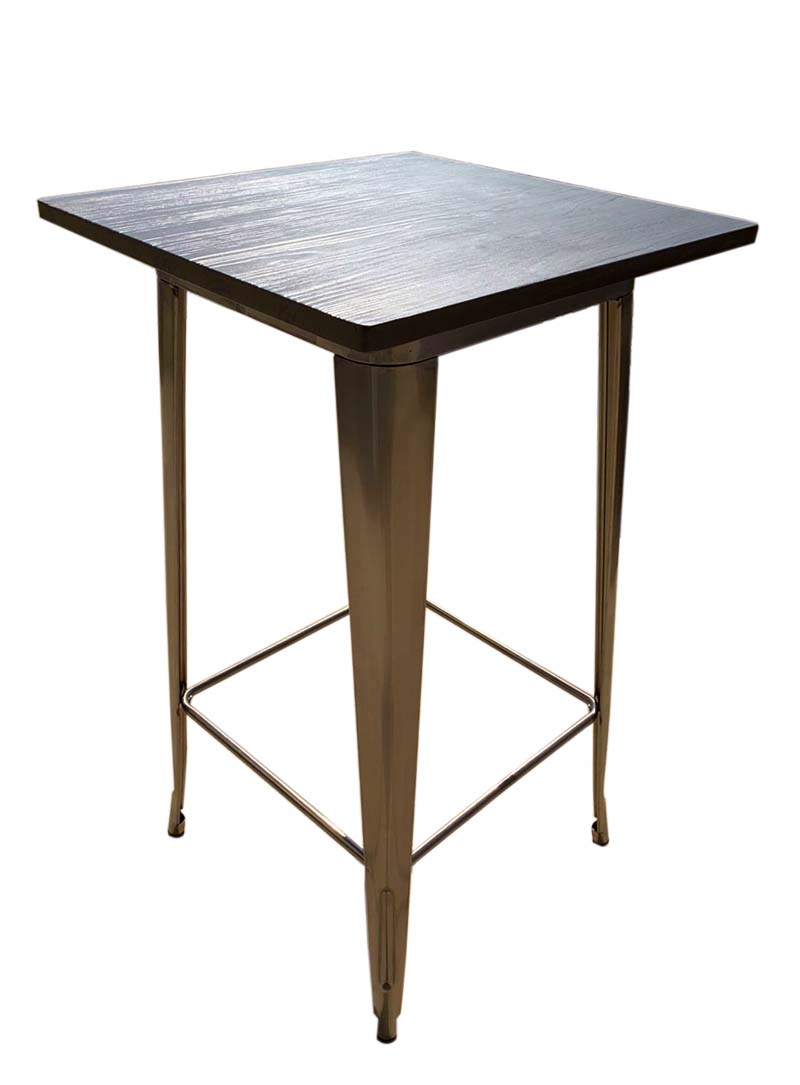Mange-debout ATLANTA en métal couleur aluminium plateau bois foncé