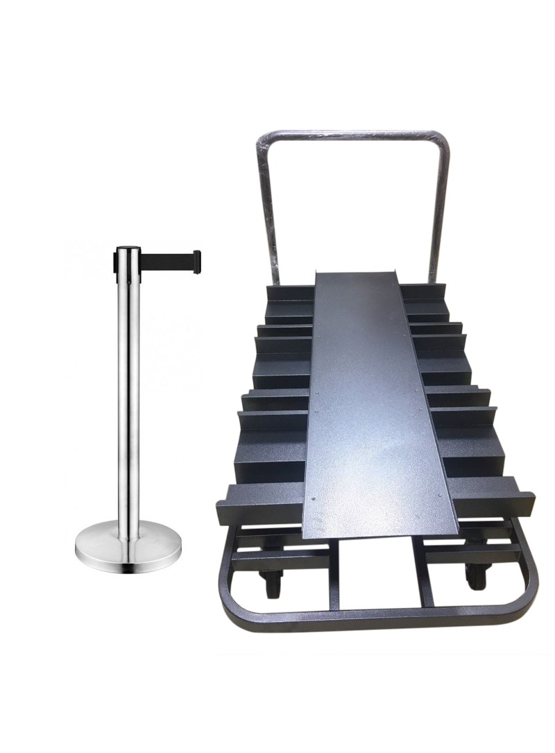 Pack 18 potelets à sangle et enrouleur en métal chromé H. 91 cm + chariot