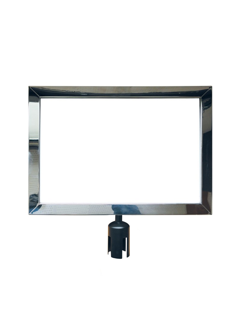Panneau indicateur A3 horizontal chromé pour potelets à sangle