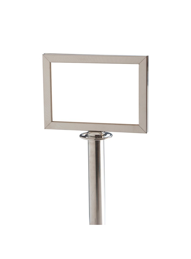 Panneau horizontal A4 à visser sur les potelets guide-file chromé et tube acrylique. Ce panneau indicateur est constitué d’un cadre chromé dans lequel se glissent deux panneaux en plexiglas.