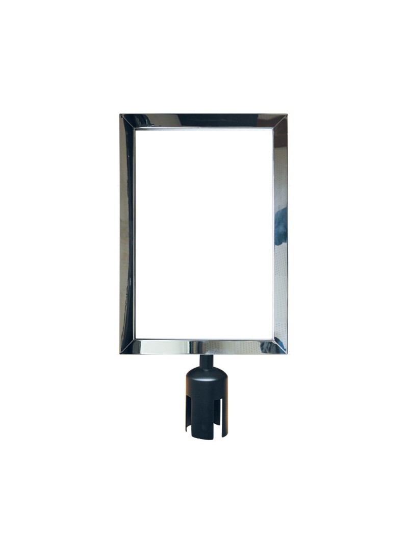 Panneau indicateur A4 vertical chromé pour potelets à sangle