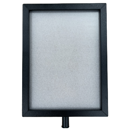 Ce panneau indicateur est constitué d’un cadre noir dans lequel se glissent deux panneaux en plexiglass.