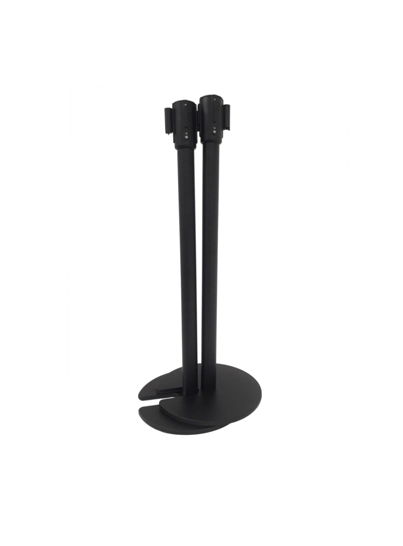 Potelet encastrable à sangle rétractable reposant sur une base lestée à tête amovible par système de visse. Chaque tête de potelet est équipée d’une sangle rouge ou noir de deux mètres de longueur et de trois points d’accroche à 90°.