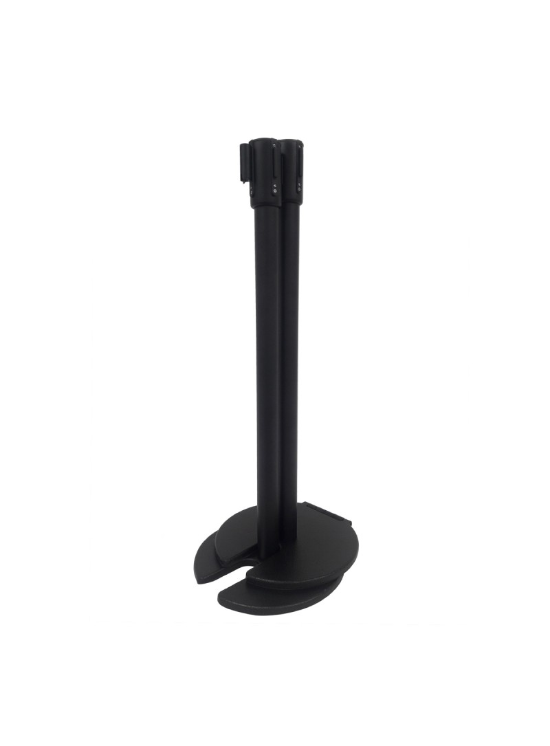 Potelet à sangle et enrouleur Noir, en métal à tête amovible H. 91 cm
