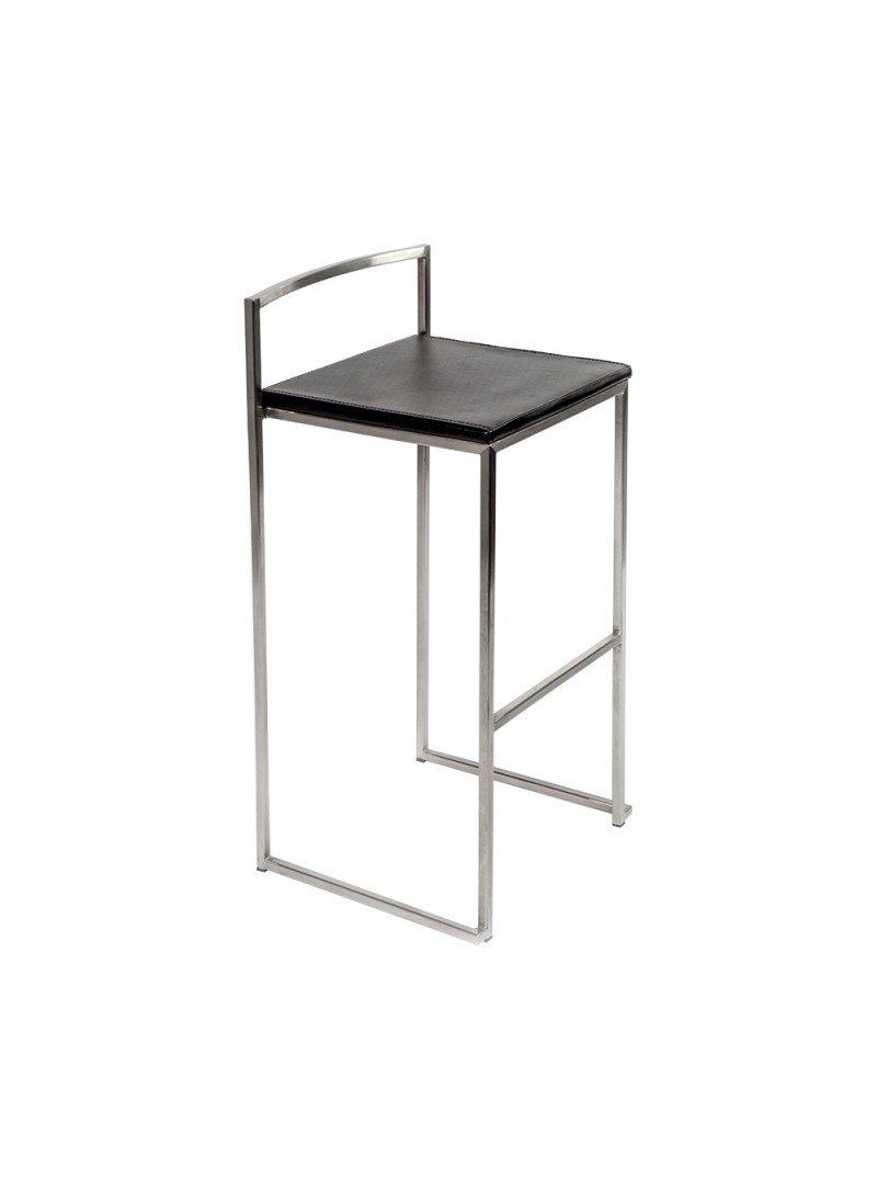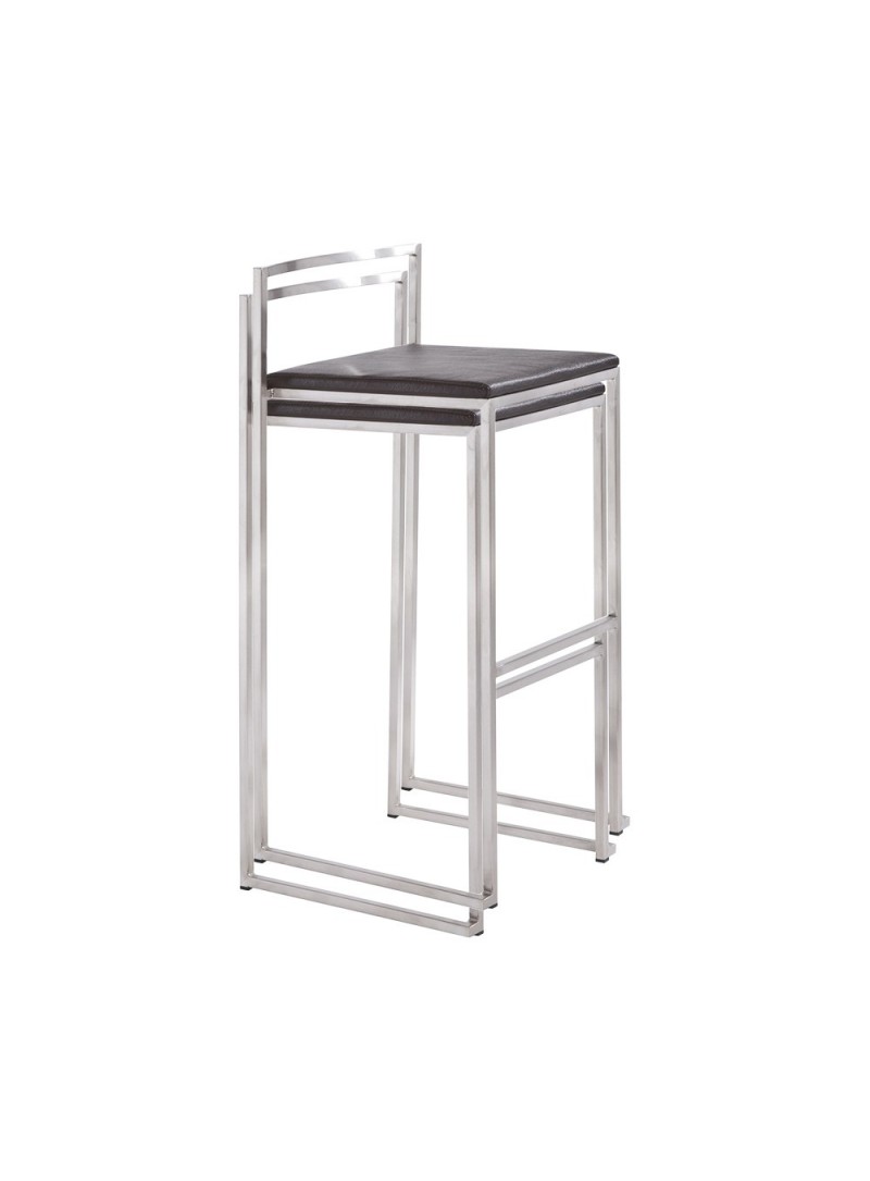 Tabouret de bar haut, cadre en acier brossé et sellerie de qualité en simili cuir. Ce tabouret est empilable : piétement « gigogne » pour un stockage optimal.
